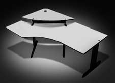 - Bilevel surfaces fit onto a corner environment with independent height control of the keyboard/desk