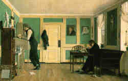 This artist painted his hard-working brothers, standing and sitting at a writing desk and table, respectively.