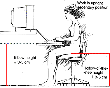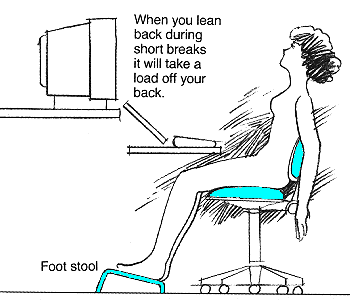 For screen work you may use the classic position with everything at right angles: neck, thigh, elbows and legs, and with your feet planted solidly on the floor. The chair must be adjusted so that it will support the natural S-shape of your spine. |